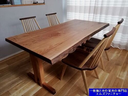 ゆらゆらとした美しい杢目のカバザクラの一枚板。 オイル仕上げを致しまして店頭へ並べました。 こういう美しい一枚板を見ると、 日本の木の一枚板は、本当に素敵だなぁ~と感じます。 四季のある日本の良さを 木のテーブルから改めて教えてもらえています。…